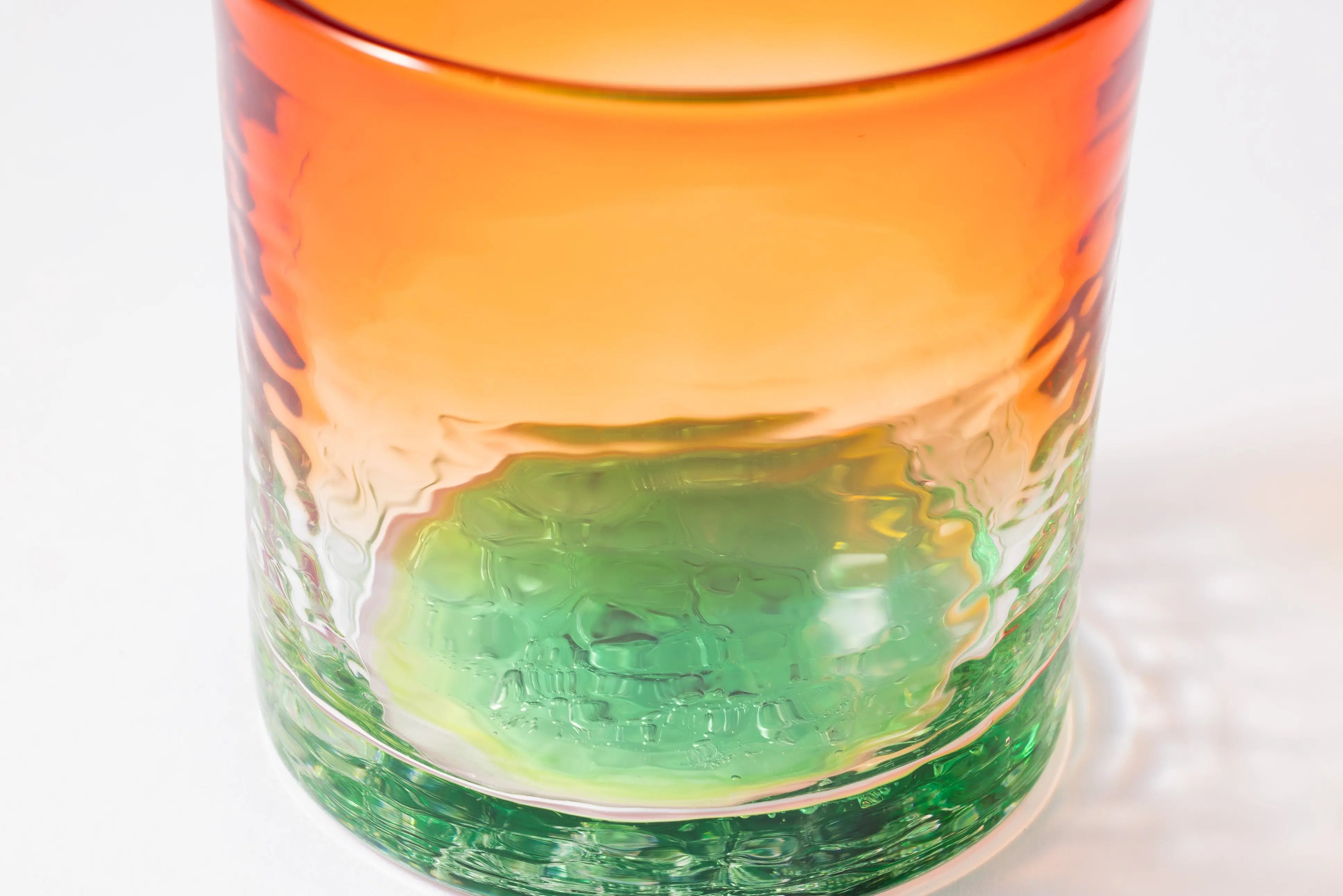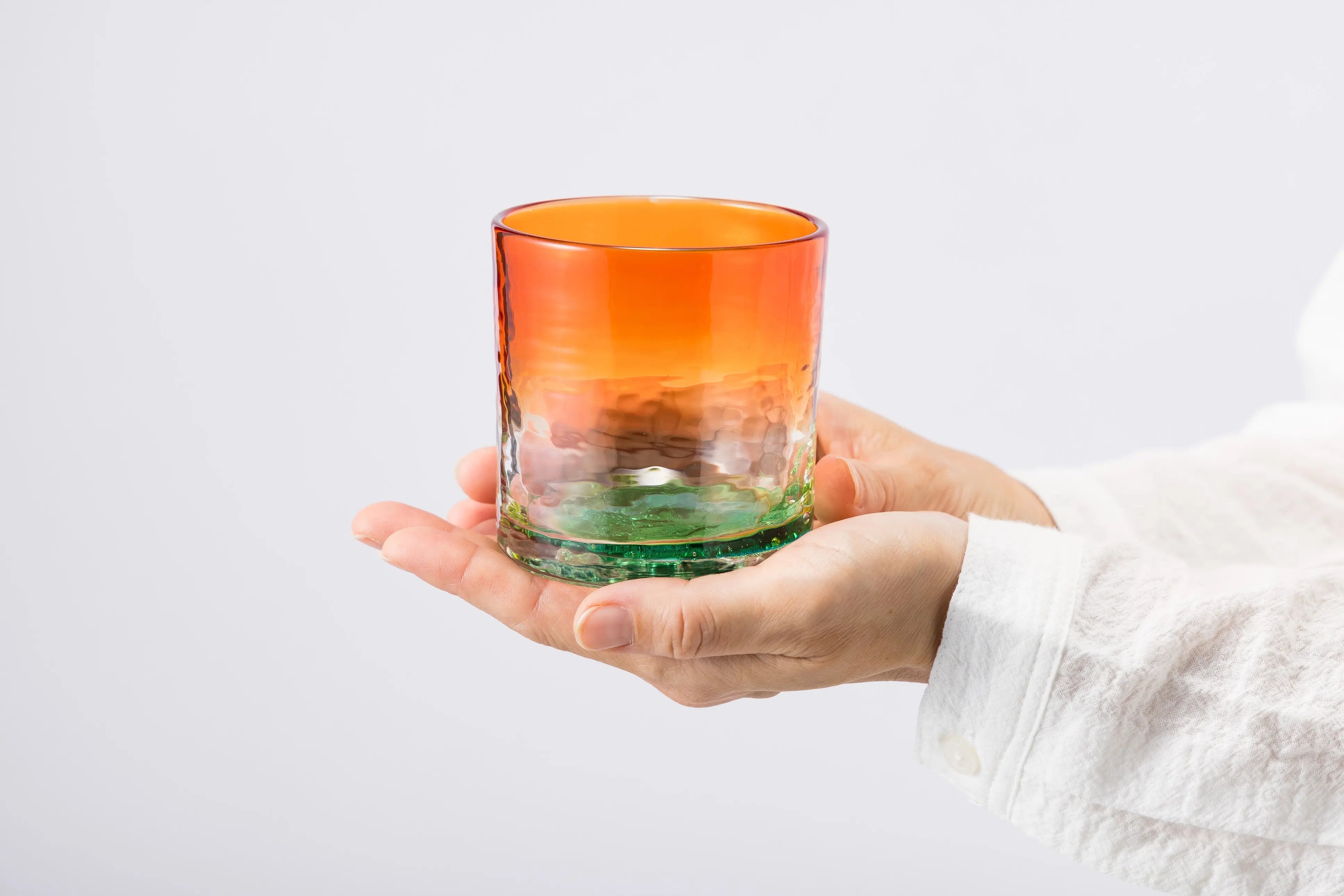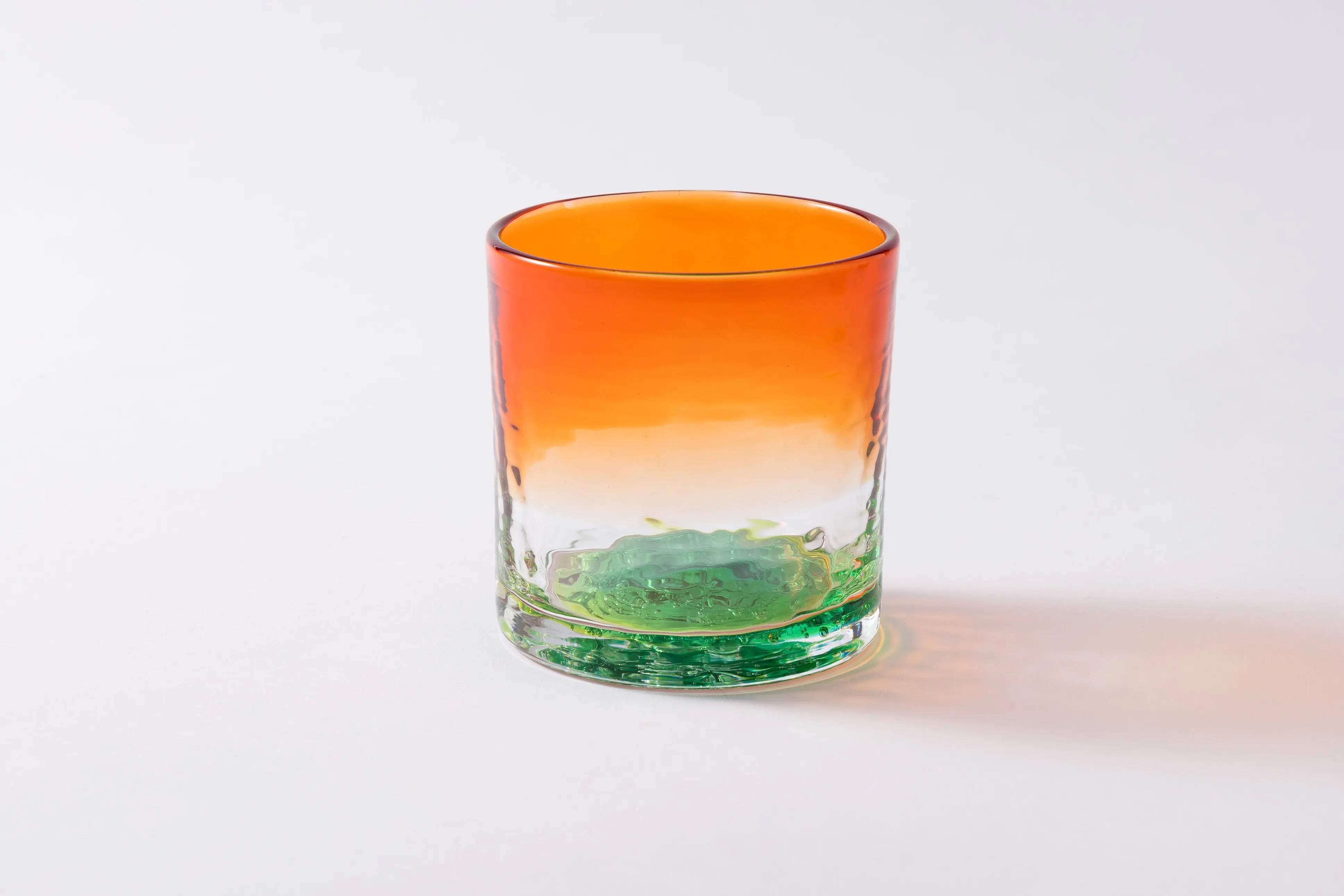 工房のある読谷村の風景からデザインが考案された、オレンジとグリーンのカラーが美しいグラス。