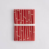 かまわぬの手ぬぐいは、明治時代から続く日本独自の染色技法「注染(ちゅうせん)」で作られています。反物に防染のりを置き、染料を一気に注ぐことで、裏表なくリバーシブルに使えるのが特徴です。