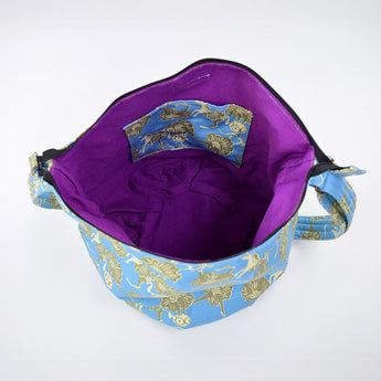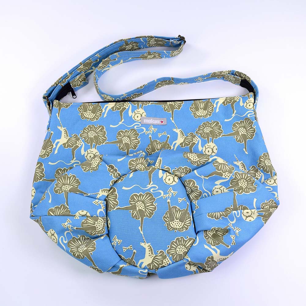 バッグに使われているのは、makumo オリジナルの生地。縫製はもちろん、生地のデザインや染色までも手作業で行っており、独自性あふれる模様や配色はここでしか出会えません。