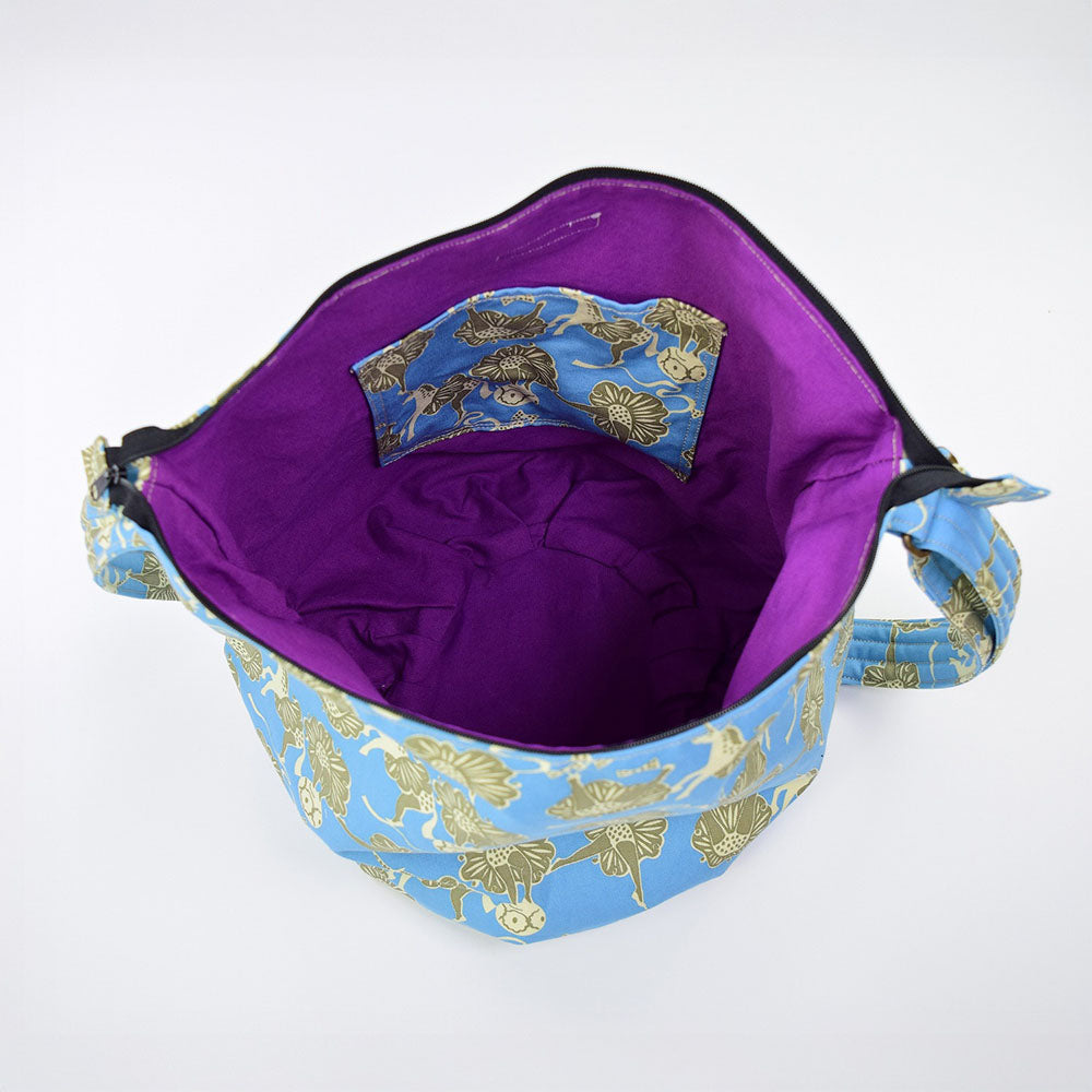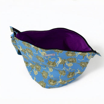 ぱっと見はボタニカル柄、よく見ると動物をモチーフにしたデザインが描かれています。不思議だけど可愛い、ユーモアあふれるバッグに仕上がっています。