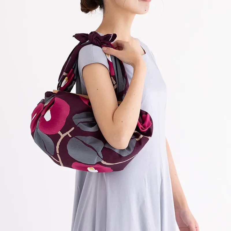 ふろしきの四隅をパッチンに通して結ぶだけで、簡単にふろしきバッグが完成します。