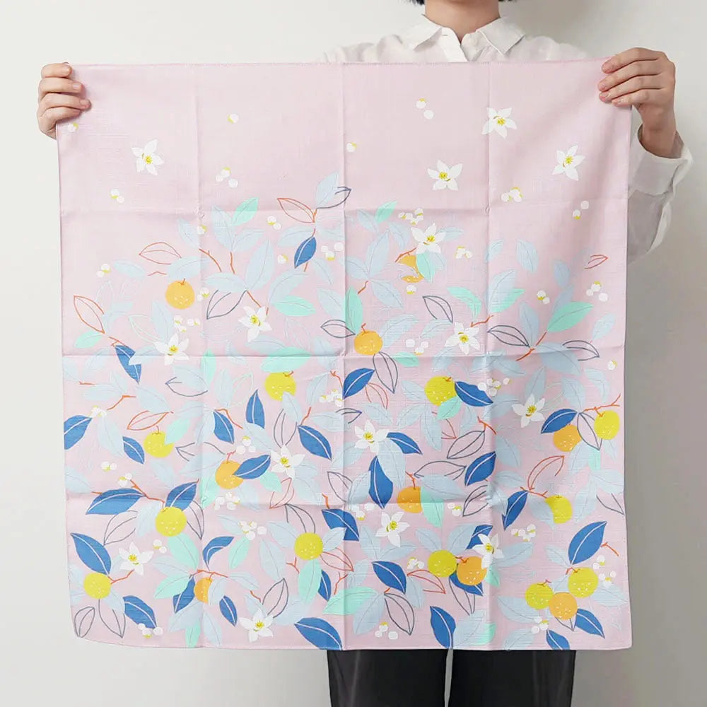 【風呂敷】オーガニックコットン 70cm シトラス柄 ローズピンク ひめむすびシリーズ Adeline Klam むす美