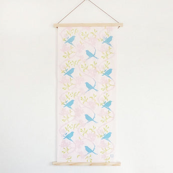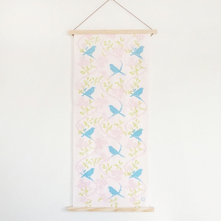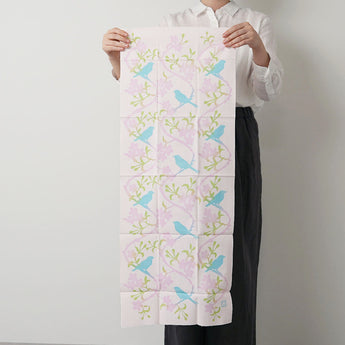 やわらかなピンクのグラデーションに、小鳥と桜が織りなす愛らしいシルエット。見るたびに春の温かさとともに、心穏やかな気持ちが訪れます。
