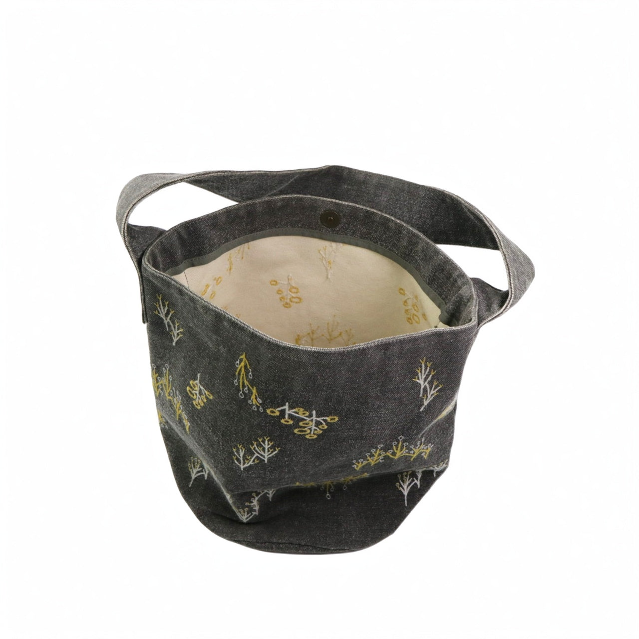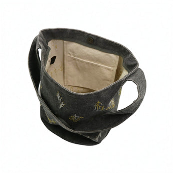 【トートバッグ】森のバケットトート コットン帆布 刺繍ステッチ グレー salvia