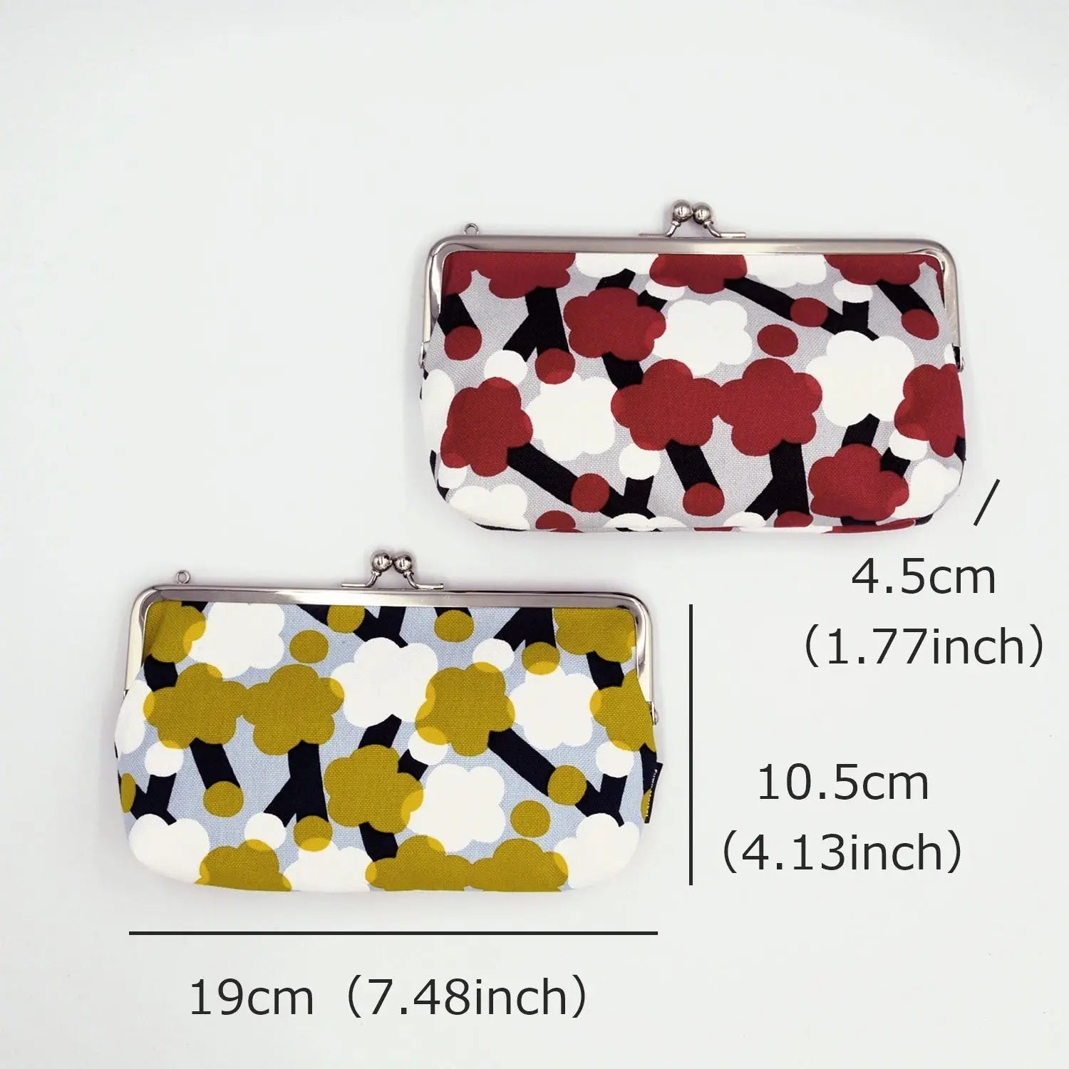 ・サイズ(約):縦10.5cm(4.13in) × 横19cm (7.48in)× マチ4.5cm(1.77in)