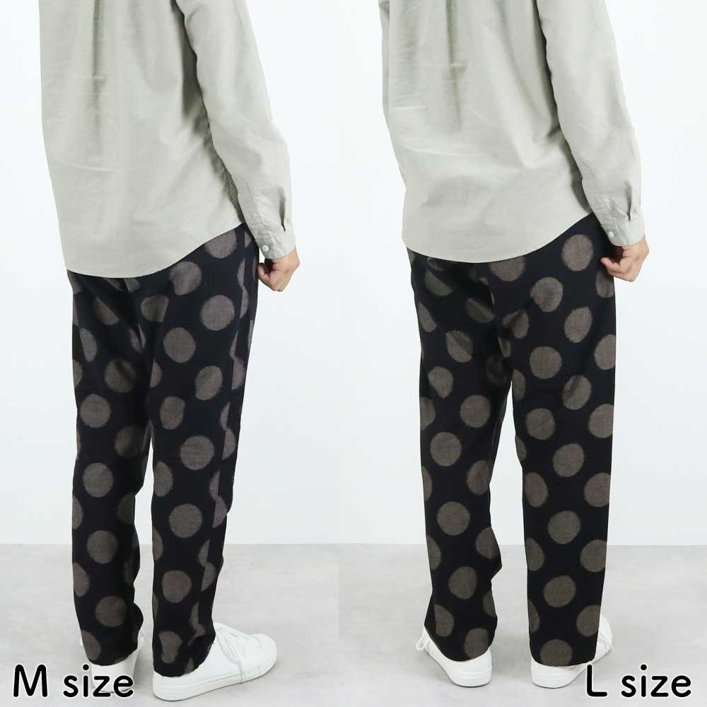裾はゴム入りできゅっと絞ってはけば足元もすっきり。動きやすく、家事やお出かけでも裾を踏みにくく快適に過ごせます。