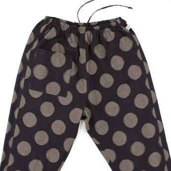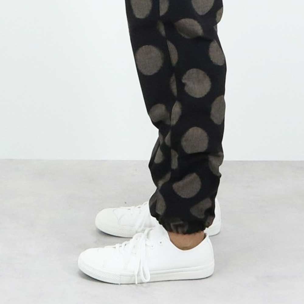 表情豊かな水玉柄の現代風もんぺ