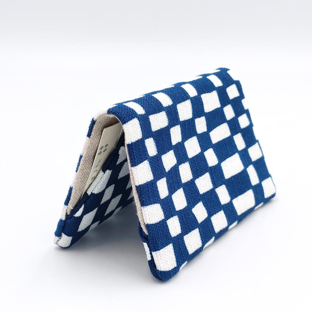 使いやすくよつめ染布舎|名刺入れ| 変わり市松 納戸色|ネイビー